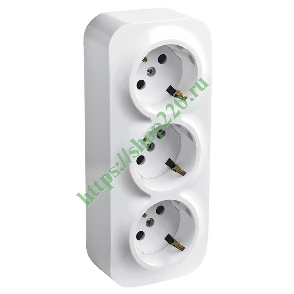 Розеточный блок 3х2К+З (с контактом заземления) с защитными шторками 16А-250В~ белый Legrand Quteo 782218