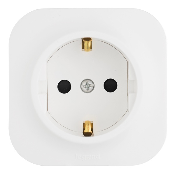 Электрическая внешняя белая розетка Легран одинарная силовая 16А электросети 220В IP20 открытой установки на стену 782220