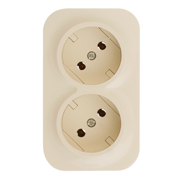Электрическая внешняя бежевая розетка Легран двойная силовая 16А электросети 220В IP20 открытой установки на стену 782242