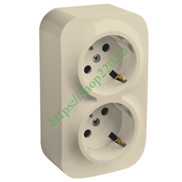 Розеточный блок 2x2К+З (с контактом заземления) без шторок слоновая кость Legrand Quteo 782243