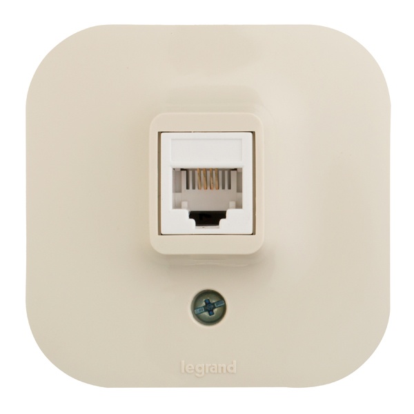 Внешняя бежевая одинарная розетка RJ-11 Легран для телефонии открытой установки на стену 782244