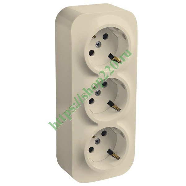 Розеточный блок 3х2К+З (с контактом заземления) с защитными шторками 16А-250В~ слоновая кость Legrand Quteo 782248