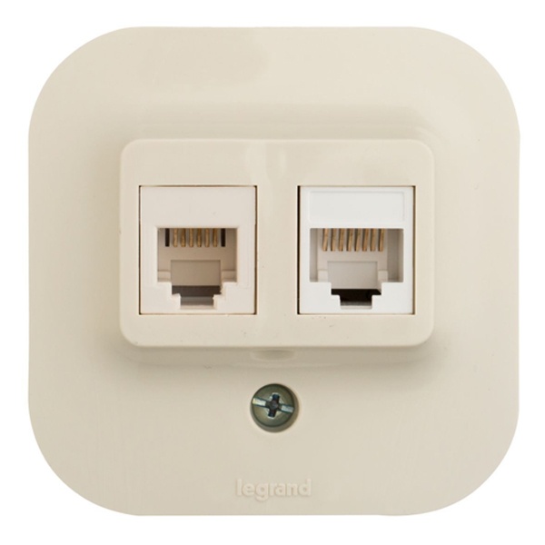 Внешняя бежевая одинарная розетка RJ-11 и RJ-45 Легран для телефонии и интернета открытой установки на стену 782251