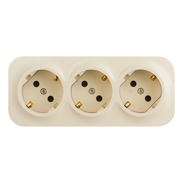 Электрическая внешняя бежевая розетка Легран тройная силовая 16А электросети 220В IP20 открытой установки на стену 782268