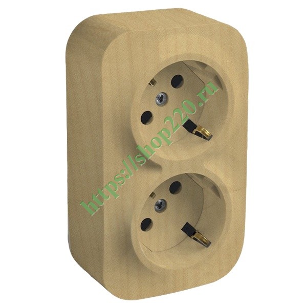 Розеточный блок 2х2К+З (с контактом заземления) с защитными шторками 16А-250В~ дерево Legrand Quteo 782283