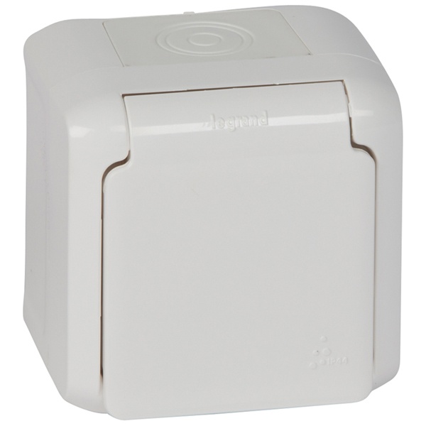 Розетка 1-м ОП Quteo 16А IP44 250В 2P+E с заземл. защ. шторки с крышкой бел. Leg 782321