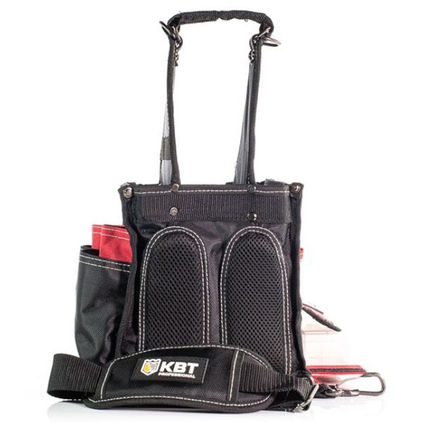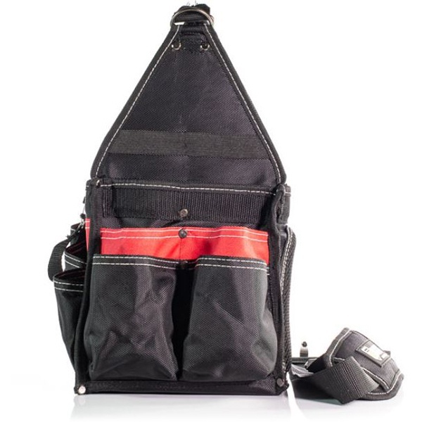 - 7 карманов, 4 мини-кармана для узких предметов, 1 крепежный элемент с металлическим карабином и 1 металлический держатель для рулетки на боковых сторонах