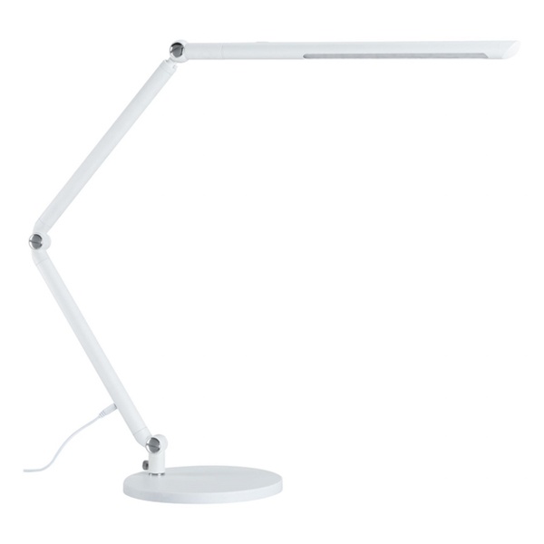 Настольная светодиодная лампа FlexBar белого цвета 10.6 Вт с технологией WhiteSwitch 3000K.Максимальное удобство, большая дальность действия, выбор белых тонов.Настольная светодиодная лампа FlexBar белого цвета максимально удобна благодаря трем шарнирам и освещает большую площадь.Цвет света можно настроить в три этапа с помощью функции WhiteSwitch, а свет можно уменьшить с помощью сенсорного диммера.