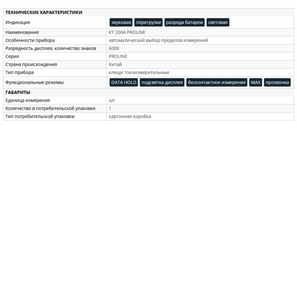 Клещи токовые цифровые KT 200A "PROLINE" КВТ 79129