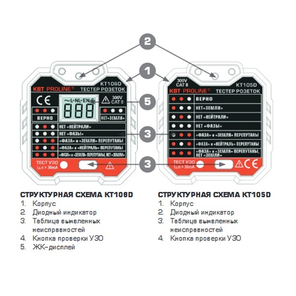 Тестер розеток и УЗО "PROLINE" KT 106D КВТ 79136