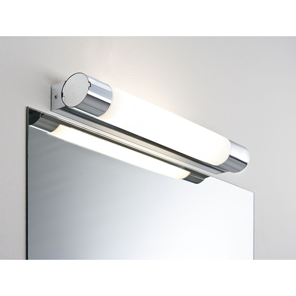 Светильник оснащен розеткой в торцевой заглушке, которая может пригодиться при бритье или сушке феном. Светильник обладает степенью защиты IP44, что предохраняет его от попадания брызг.