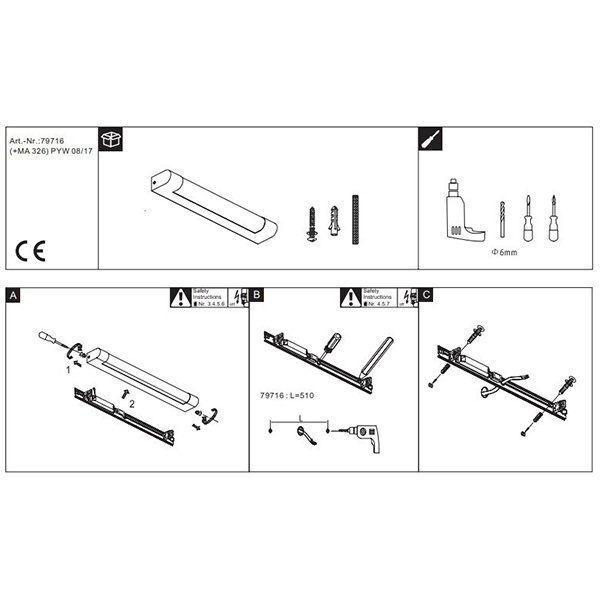 - Размеры: 630x82x45 мм