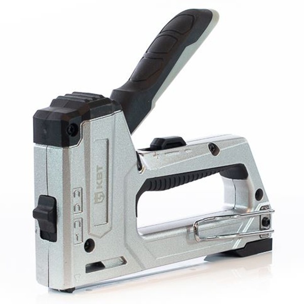 • Степлер строительный КВТ СТС-4 ПрофИ с рессорным ударным механизмом, при помощи скоб и гвоздей