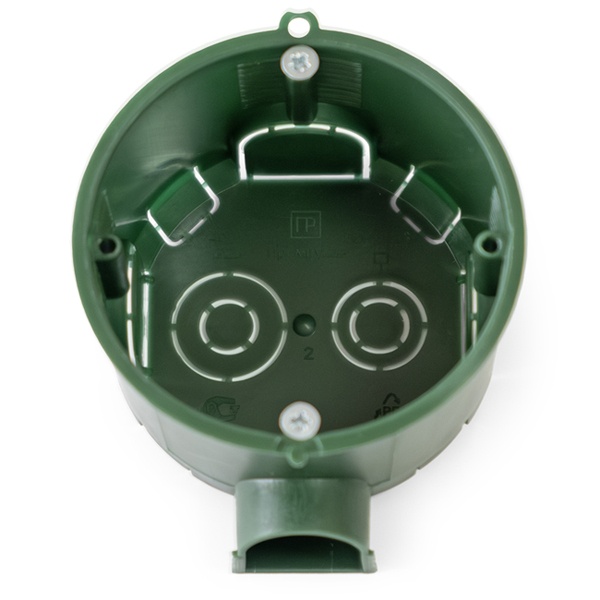 Монтажная коробка (подрозетник или установочная коробка) диаметром 68 мм и глубиной 45 мм для установки в бетон, с саморезами 80-0560См