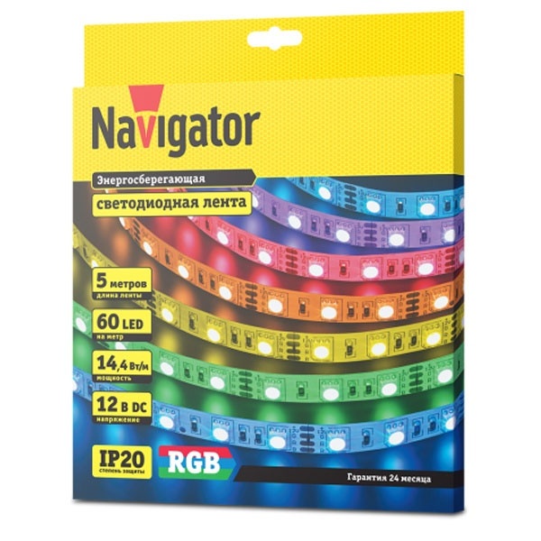 • Светодиодная лента Navigator 80 300 NLS-5050RGB60-14.4-IP20-12V R5 14,4W (бухта 5m)