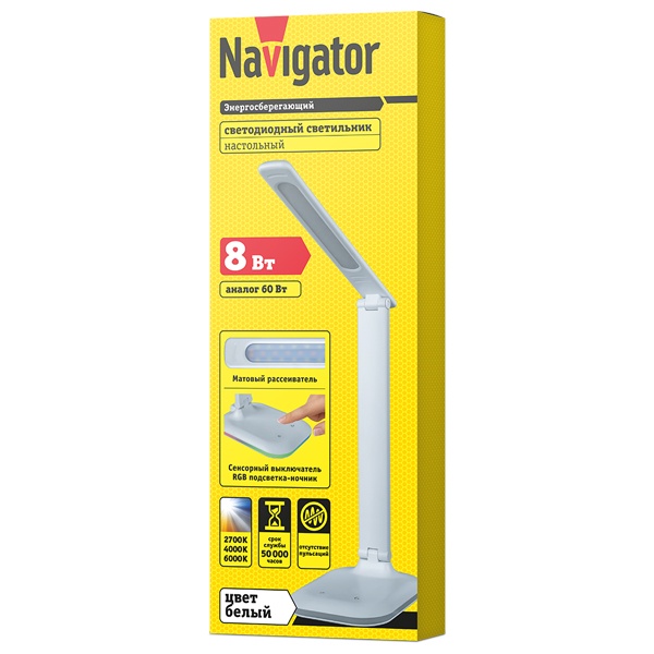 Настольный LED светильник Navigator сенсорный с функцией диммирования и смены цветовой температуры, белый 80319