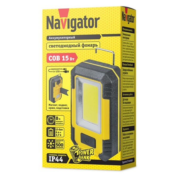 Универсальный аккумуляторный светодиодный фонарь Navigator серии NPT-W послужит идеальным помощником при проведении слесарных, электротехнических и сантехнических работ.
