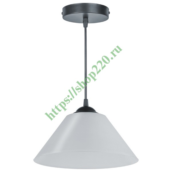 Подвесной черный светильник Навигатор с белым конусным плафоном под одну лампу с цоколем Е27 мощностью до 40 Ватт. 80411