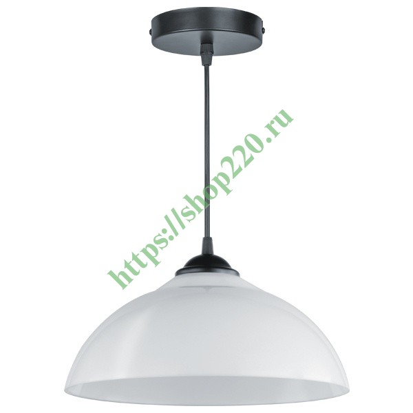 Подвесной черный светильник Навигатор с белым плафоном полусфера под одну лампу с цоколем Е27 мощностью до 40 Ватт. 80413