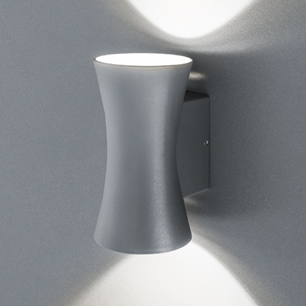 Фасадный светодиодный светильник в форме песочных часов для архитектурной подсветки в двух направлениях, серый корпус из алюминия, мощностью 10 Ватт теплого дневного света. 80611