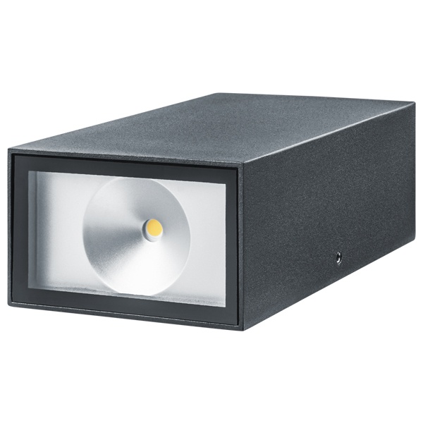 Фасадный светодионый светильник в форме прямоугольника черного цвета со световым потоком в двух направлениях, мощностью 6 Ватт теплого белого света. 80616