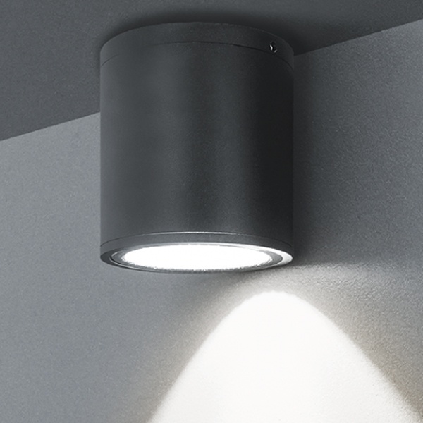 Серый накладной, цилиндрический, светодионый светильник подсветки, мощностью 7 Ватт теплого белого света. 80637