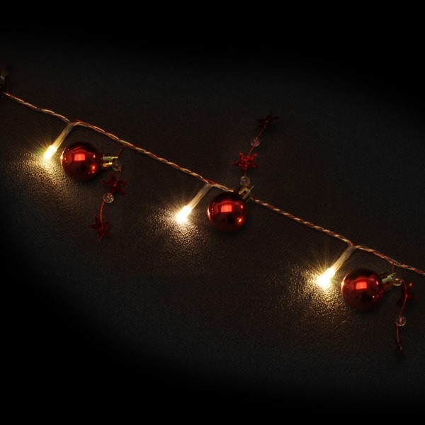 Гирлянда светодиодная «Красные шарики и звездочки» длиной 1,2 м, прозрачный ПВХ, 10 светодиодов, теплый белый, питание 2 х АА (батарейки не в комплекте) 80720