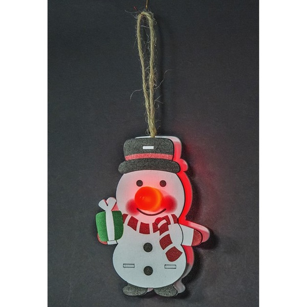 Деревянное елочное украшение Снеговик красного свечения на батарейке CR 2032, Navigator 80723