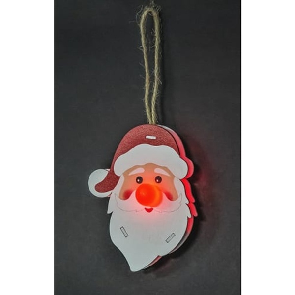 Деревянное елочное украшение Дед Мороз красного свечения на батарейке CR 2032, Navigator 80724