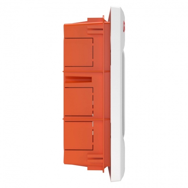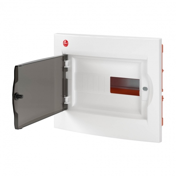 Данный встраиваемый щиток, от известного российского производителя – электротехнической компании DKC, предназначен для размещения различных коммутирующих и защитных устройств (например, УЗО или дифференциальных автоматов). Для этого в конструкции щитка имеется стандартная DIN-рейка шириной 35 мм. Её длина позволяет располагать несколько таких устройств. Максимальное количество модулей равно 12. Внешняя панель, представленного встраиваемого щитка, изготовлена из белого (RAL 9016) термостойкого пластика. Щиток имеет следующие размеры: высота – 275 мм, ширина – 333 мм и глубина – 103 мм. Корпус данного изделия изготовлен из термопласта. Качественная сборка обеспечивает этому изделию степень защиты IP41. Данный встраиваемый щиток полностью соответствует всем требованиям международных и отечественных стандартов.
