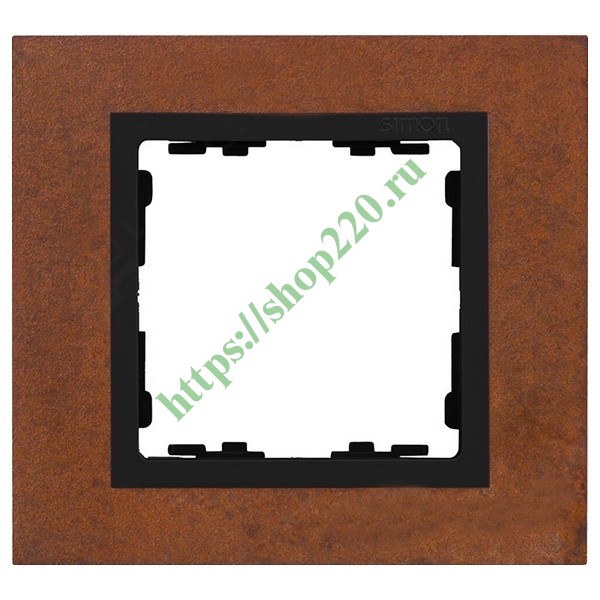 Предлагаемая здесь однопостовая декоративная рамка изготовлена из легированной стали. Специальная химическая обработка поверхности создает стойкое и глубокое покрытие, имитирующее цвет металлической окалины. Фактура остается неизменной на протяжении всего срока эксплуатации. В центральной части рамки, располагается графитовая вставка, способствующая адаптации различных гамм накладок и клавиш механизмов производственной линейки Simon 82.