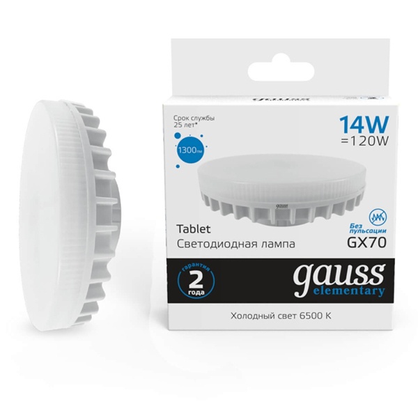 LED лампочка таблетка мощностью 14 Вт с цоколем GX70 холодный свет для натяжных потолков 83834