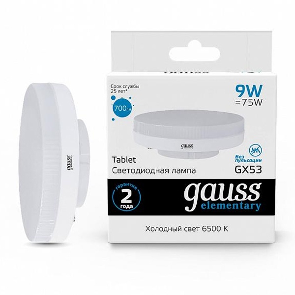 LED лампочка таблетка мощностью 9 Вт с цоколем GX53 холодный свет для натяжных потолков 83839