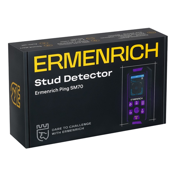Ermenrich Ping SM70 — это усовершенствованный детектор скрытых объектов, оснащённый цветным LCD-дисплеем диагональю 2,4 дюйма. Устройство работает от встроенного аккумулятора ёмкостью 390 мАч, зарядка которого осуществляется через USB-кабель (входит в комплект).
