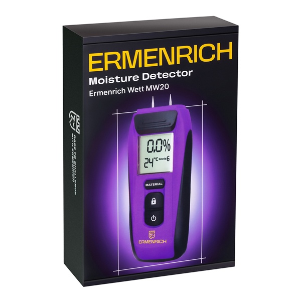 Влагомер Ermenrich Wett MW20 предназначен для измерения влажности и температуры различных видов древесины, а также таких строительных материалов, как штукатурка, кирпич и бетон. Устройство будет полезно в строительстве, мебельном производстве, столярном деле и ремонте.