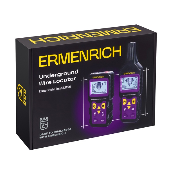Ermenrich Ping SM150 — профессиональный детектор подземных проводов с расширенным набором функций. В комплект входят передатчик и приёмник с необходимыми аксессуарами. Благодаря встроенной функции вольтметра прибор позволяет тестировать электрические сети и трубы, скрытые в стенах или под землёй, а также эффективно их обнаруживать. Кроме того, устройство помогает выявлять скрытые в стенах розетки, реле и предохранители.