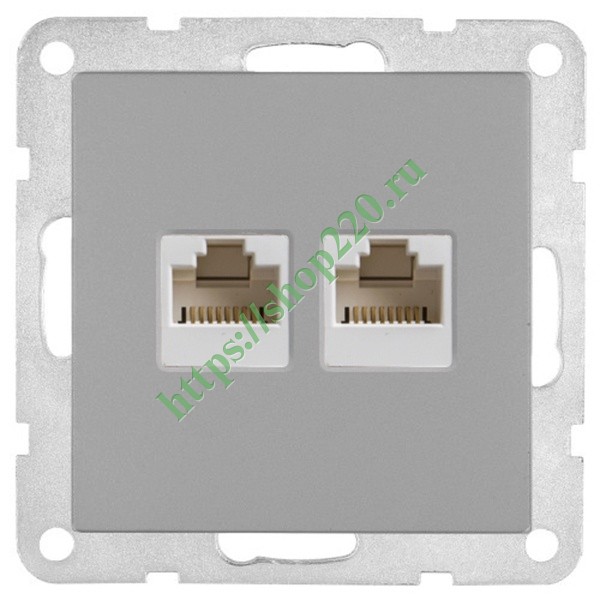 Розетка двойная компьютерная 2хRJ-45 кат.6 с накладкой Экопласт LK80, серебристый металлик