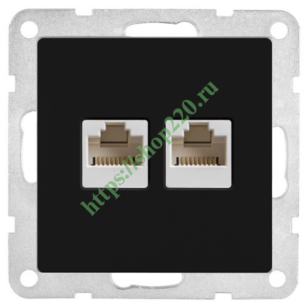 Розетка двойная компьютерная 2хRJ-45 кат.6 с накладкой Экопласт LK80, черный бархат 846408-1