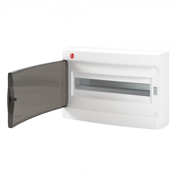 Предлагаемое оборудование предназначено для организации щитового размещения устройств контроля и защиты внутренних электрических цепей в административных и жилых зданиях. Это настенный щиток, представляющий производственную линейку RAM base, производства известной российской электротехнической компании ДКС.Корпусная конструкция данного изделия выполнена из специального очень прочного и устойчивого к высоким температурам пластиката, состоит из основания и лицевой панели, оборудованной дверцей из прозрачного поликарбоната. Размещение внутреннего наполнения – в одну горизонтальную линейку, на DIN-рейку. Вместимость – 18 модулей. Степень защиты внутреннего объема щитка – IP41.Данный распределительный щиток монтируется на вертикальную поверхность ограждающих конструкций (анкерно-винтовой крепеж). Задняя стенка оборудована кабельными вводами, закрытыми легко устраняемыми мембранами. В заводскую комплектацию входит усиленный клеммный блок. Коммутационное устройство состоит из держателя и двух колодок с винтовыми зажимами. Колодки рассчитаны на токовую нагрузку 160 Ампер. Пластиковый держатель оборудован суппортным устройством, адаптированным к установке на специальный профиль.