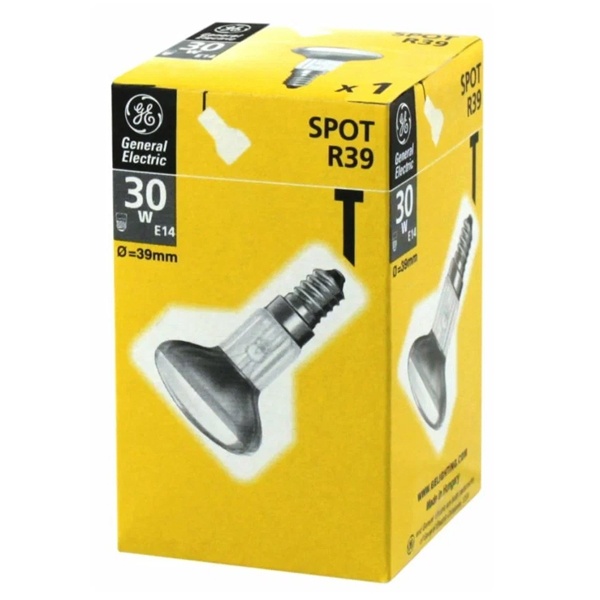 Зеркальная лампа накаливания с цоколем Е14 R39, мощностью 30 Ватт.
