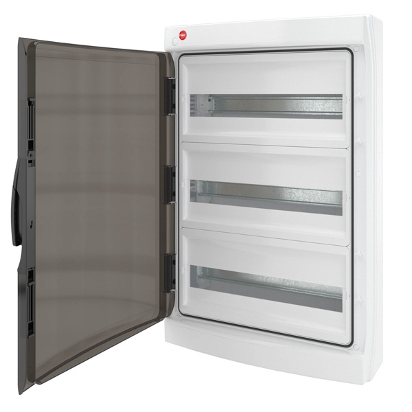 • Щиток настенный RAM base (3х18) на 54 модуля прозрачная дверь серый IP65 DKC