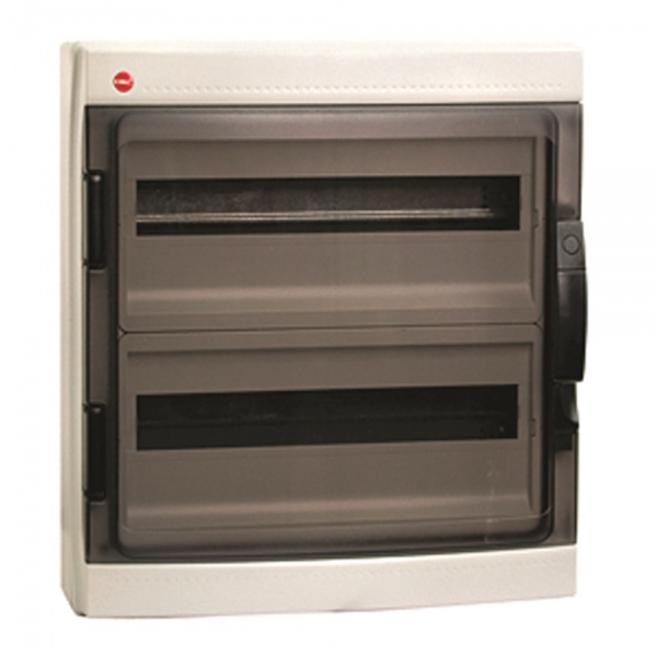 Представленный здесь настенный распределительный щиток изготовлен из специального термостойкого пластика светло-серого цвета. Данное изделие имеет габаритные размеры 470х426х148 мм. Степень защиты бокса - IP65, благодаря чему он может без проблем эксплуатироваться в сильно запыленных и очень влажных помещениях. Изделие можно устанавливать снаружи зданий, под открытым небом без навеса. Распределительный щиток изготовлен на предприятиях известной российской электротехнической компании ДКС. Данный распределительный корпус рассчитан на установку 36 электротехнических модульных устройств. В комплекте щитка имеется два усиленных клеммных блока. Защита встроенного в модульный щиток оборудования осуществляется прозрачной дверцей с защелкой. Крепление дверцы универсальное, благодаря чему ее можно легко установить на правую либо левую сторону.Краткие технические характеристики.Вид изделия – модульный распределительный щиток. Число модулей – 36.Материал – термопластик. Габариты - 470х426х148 мм. Установка – навесная на стену.Цвет – светло-серый (7035 RAL) Защита – IP65.Производитель – компания DKC.