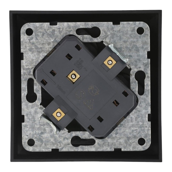 Здесь, представлена двойная силовая розетка, в корпусе цвета черный бархат, со штекерными вводами, оснащенными шторками, и дополнительным заземляющим контактом. Шторки предотвращают случайные контакты людей с токопроводящими элементами (актуально для семей с детьми) и попадание внутрь механизма твердых частиц пыли. Заземляющий контур повышает эксплуатационную безопасность самой розетки, питаемого электрооборудования и пользователей.