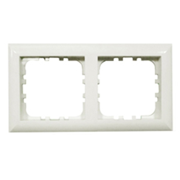 Здесь представлено профильное изделие на два установочных места. Рамка предназначена для общего оформления блока из двух встроенных механизмов любого уровня. Белый цвет поверхности и строгость прямых углов определяет тип классического экстерьерного дизайна. Такое положение, способствует адаптации декоративного элемента в формат любых дизайнерских решений.