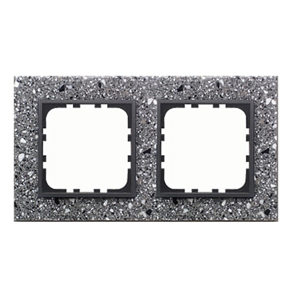 Стильная 2-постовая рамка изготовлена из декоративного, имитирующего серый гранит, камня. Данное изделие воплощает элегантность и ненавязчивый роскошный стиль. Может прекрасно сочетаться с самым изысканным интерьером, имеет идеальные строгие линии и выдержанные пропорции. Целиком отвечает все европейским образцам безопасности.