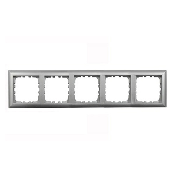Многопостовая рамка металлического цвета с серебристым отливом актуальна для оформления постовой установки коммутационных устройств в офисах или в помещениях с дизайнерскими решениями в технических стилях. Пять установочных мест открывают возможности для создания многофункциональных компактных модульных блоков.