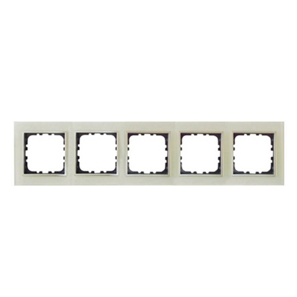Для изготовления данной 5-постовой декоративной рамки для декоративного оформления блока розеток с выключателями, смонтированными в одну горизонтальную линию, используется натуральное светлое стекло. Рамка обладает высокой совместимостью практически со всеми электро-механизмами этой серии. После монтажа изделие придает устройствам дополнительную защиту класса IP20.