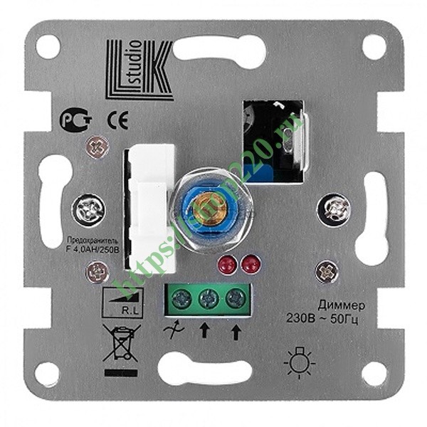 Предназначен для коммутации и плавного изменения яркости источников света. Создает комфортный уровень освещенности и позволяет экономить электроэнергию. Регулировка возможна при использовании электронной пускорегулирующей аппаратуры с возможностью регулировки (выход 1-10 Вольт). Включение и выключение нагрузки производится нажатием ручки, а регулировка — вращением.