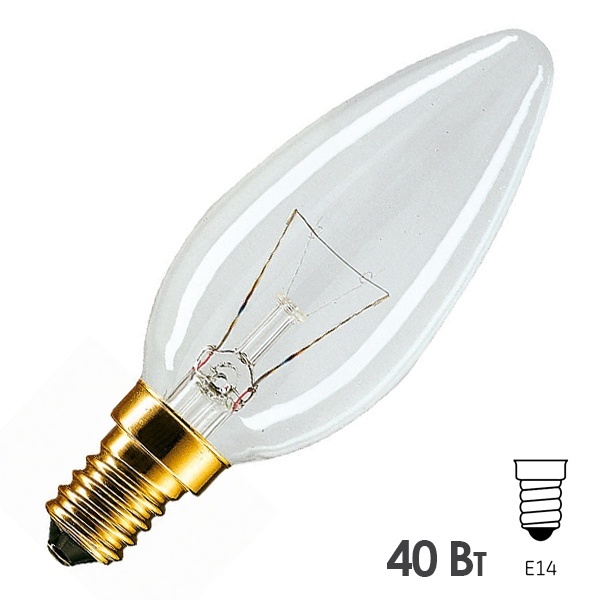 Обычная вольфрамовая лампа формы свеча мощностью 40 Вт на 220 Вольт с цоколем E14 миньон общего назначения 926000006814