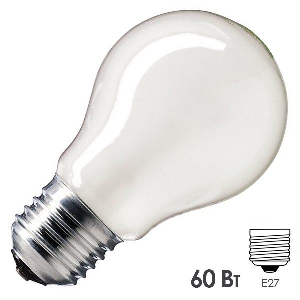 Обычная вольфрамовая лампа формы Груша мощностью 60 Вт на 220 Вольт с цоколем Е27 общего назначения 926000007317